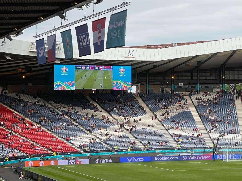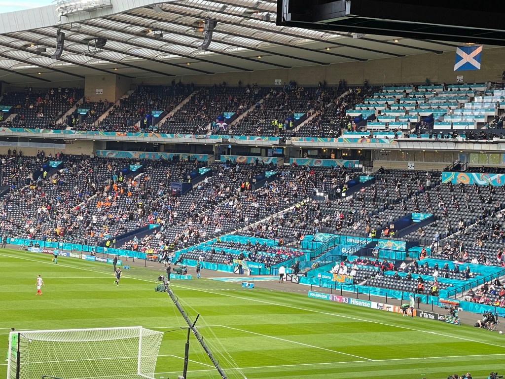 Bit more of a buzz pre match outside the stadium than there was on Friday, might have been helped that both teams needed a win to have any chance of progressing. To be fair to the Scotland fans they were making plenty of noise even though Hampden was only at 25% capacity.