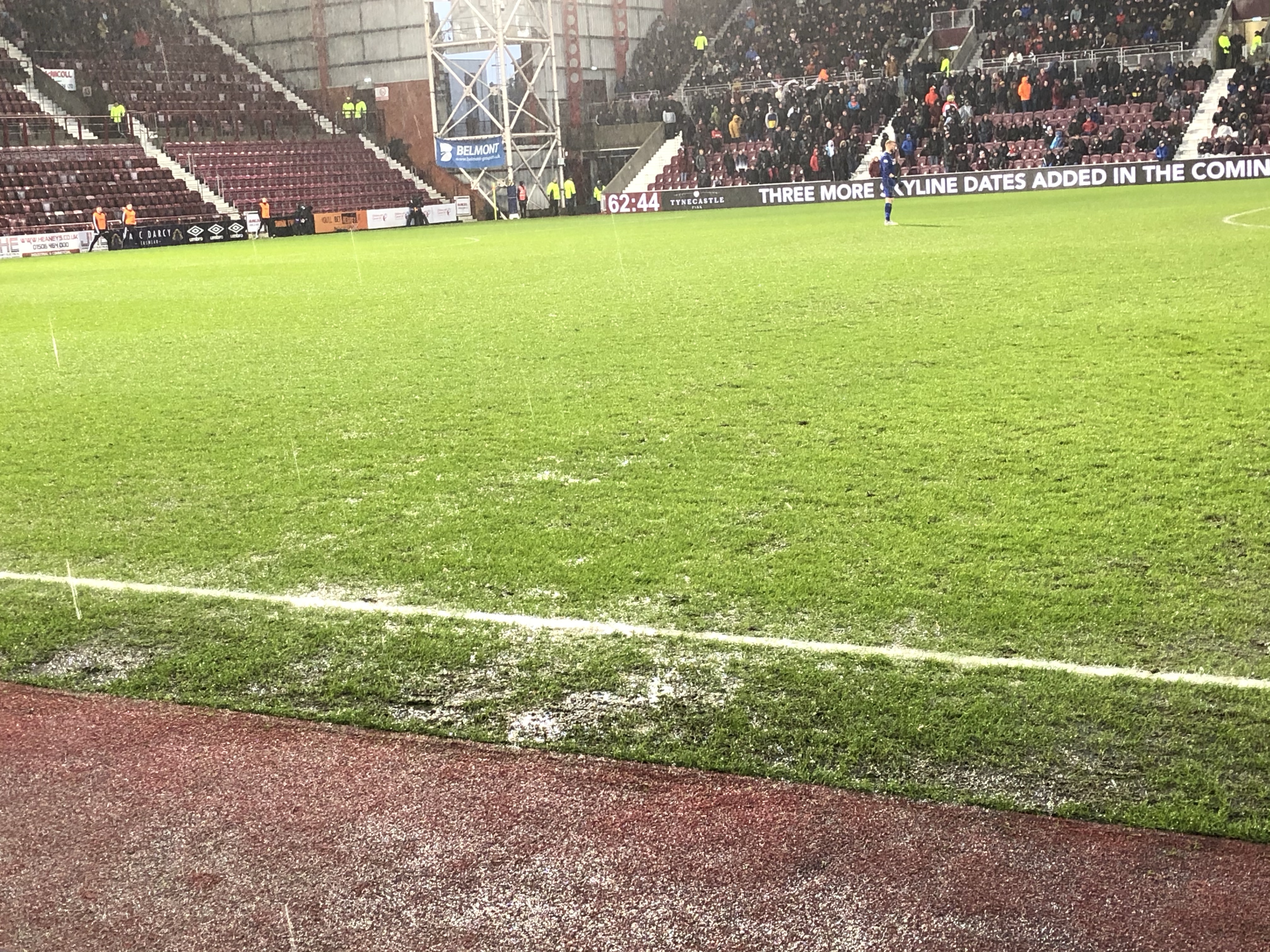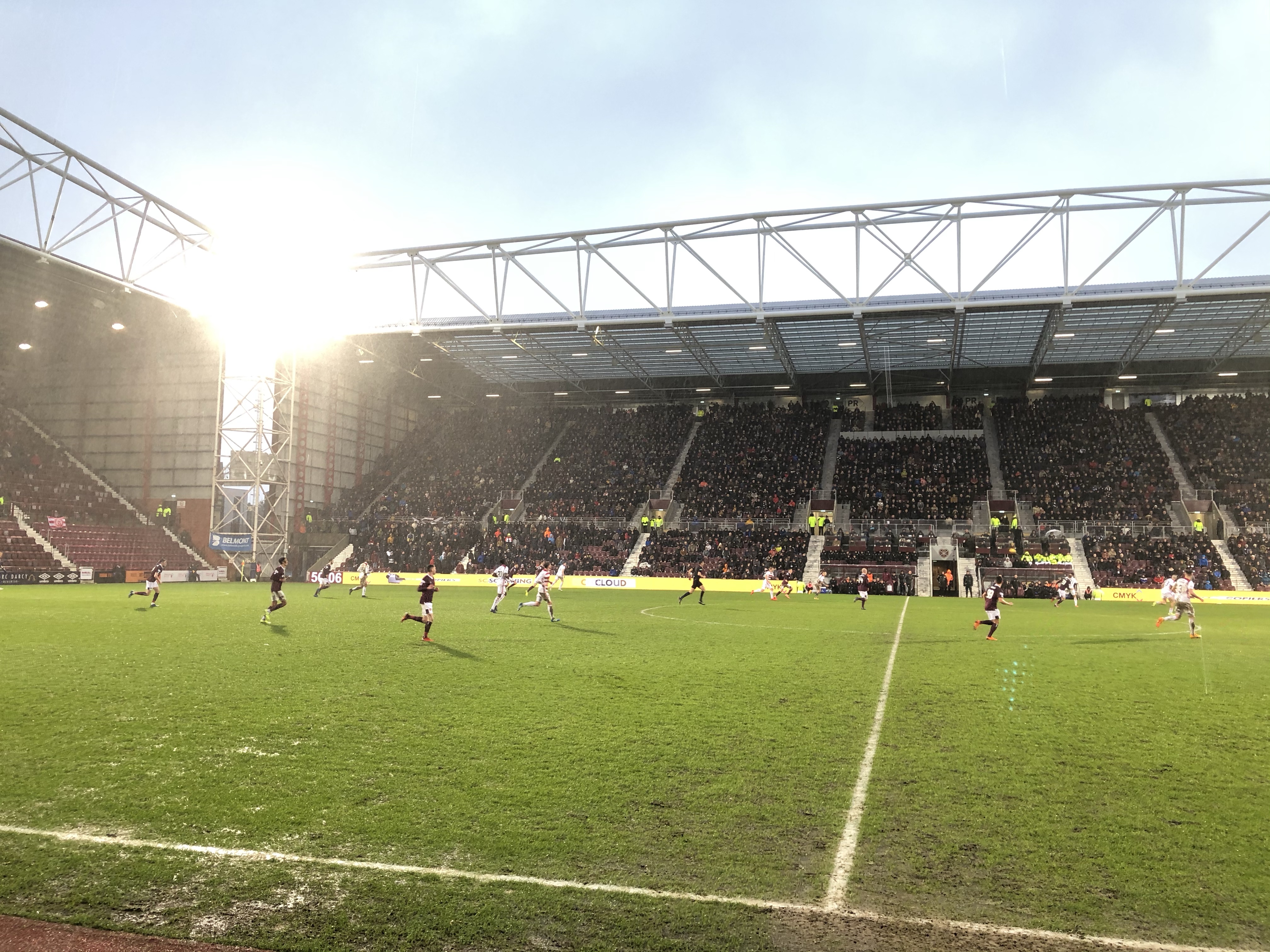 Falkirk have a plastic pitch which I’m not the biggest fan of, give me a grass everyday of the week. I understand it means less games abandoned but I feel it ruins the game. It wasn’t a good game from a Hearts view and Falkirk seemed the better side hitting the woodwork three times, but in cup football it doesn’t matter how you play it’s winning the game and progressing that counts. I feel that the horrific weather played a big part in the game and Hearts did enough to go through to the quarter finals.