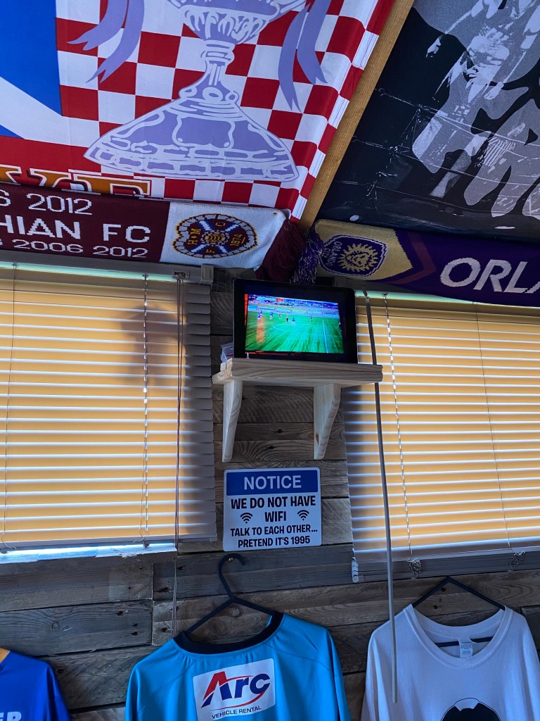 As the first half ticks on I was pretty happy to have my tweet read out on Hearts TV and good to hear a bit of pub shed appreciation.
